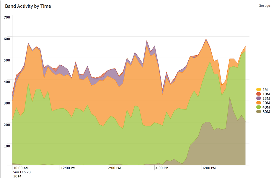 2014: County Activity | QSO by Hour/Band