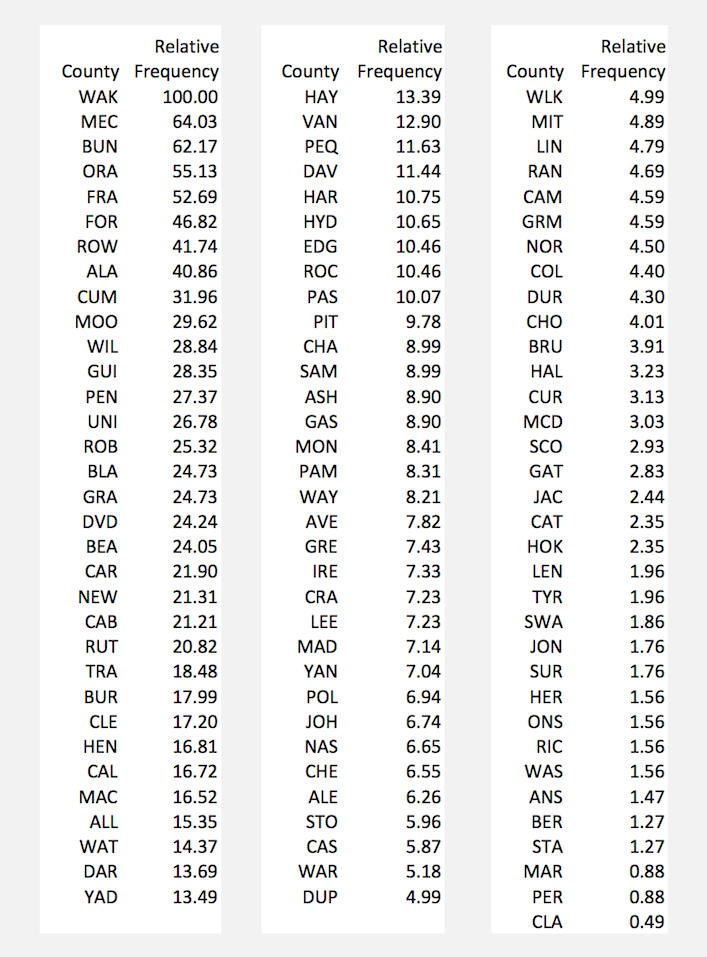 North Carolina County Abbreviations