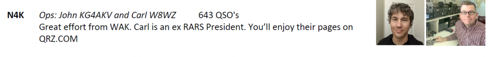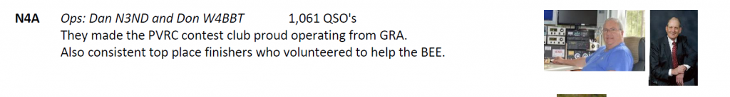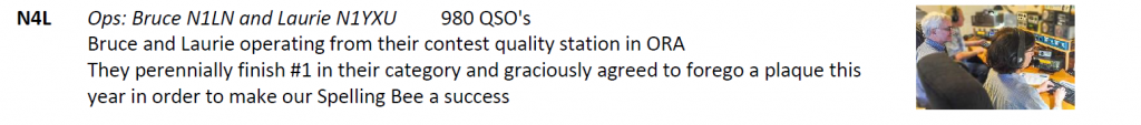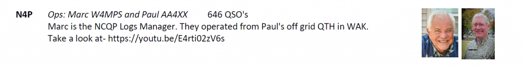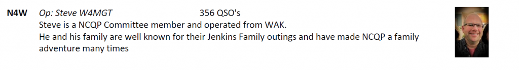Bruce, N1LN, and Laurie Meier, N1YXU, took on N4K this year for us. Laurie is a Duke alumni and said she liked taking on the suffix letter “K” to commemorate Coach K’s retirement from Duke this year. Bruce and Laurie have a long relationship with us on the NCQP committee in offering their operations skills to help the QSO party. In those off years where they weren’t in the bonus lineup they were aligning with the Orange county club helping them. These guys are the truest of what ham radio service is all about.